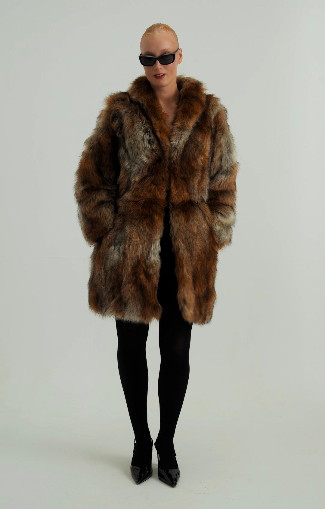 Inspired by the rich tones of the red fox, the Novira Coat captures a spectrum of amber hues that shift gently with the light. Its texture reveals subtle movement and depth, flowing naturally around the body in a harmony of structure and softness. Thoughtfully balanced in form, Novira holds its shape while draping fluidly — elegant in motion, effortless to wear.